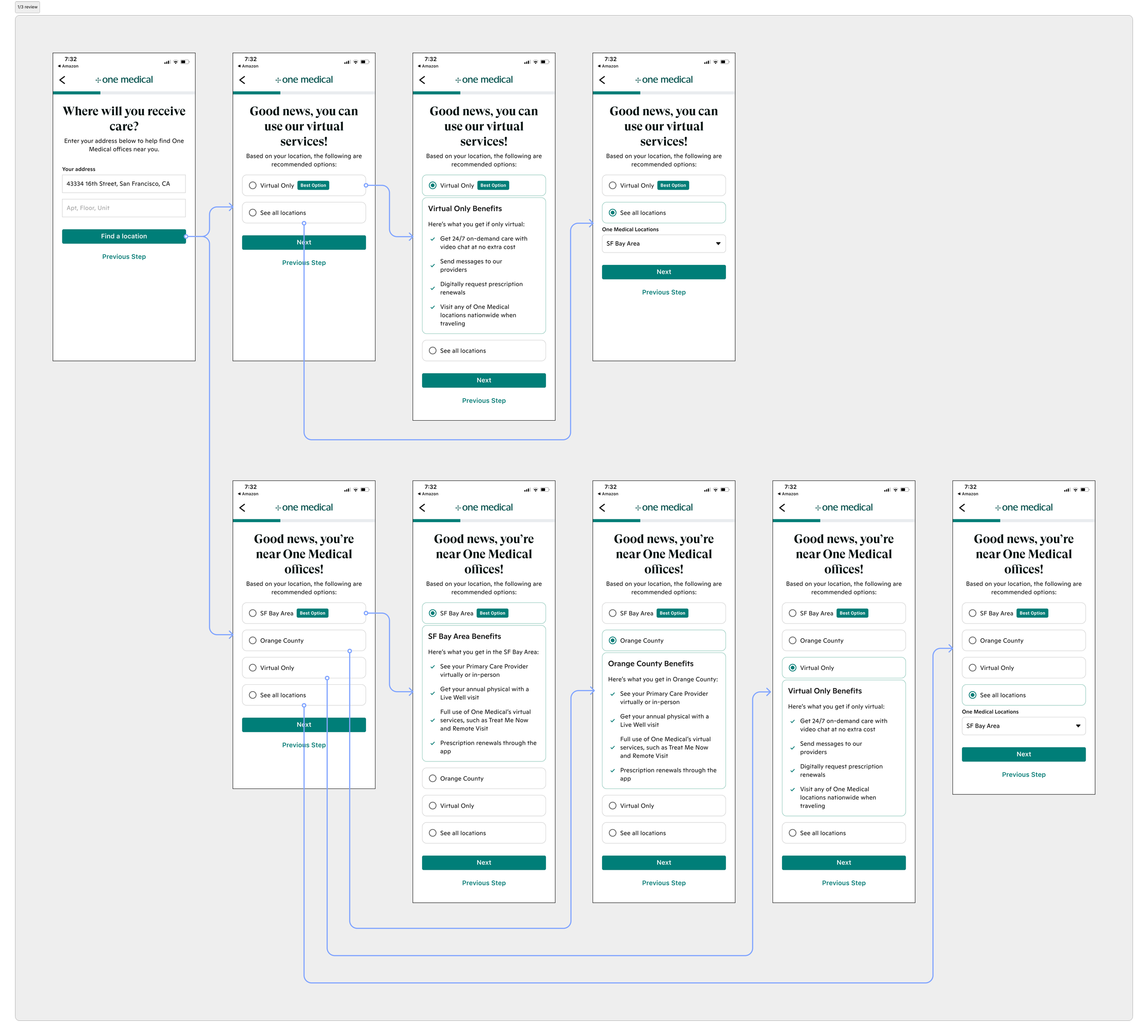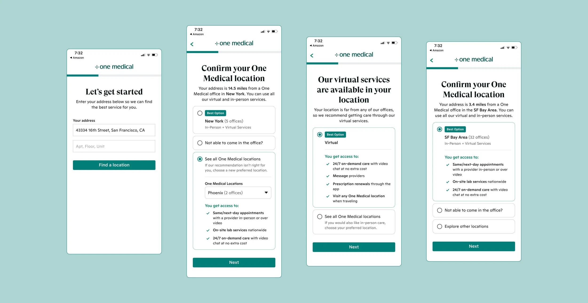 One Medical is a membership-based primary care practice that provides care that is affordable, accessible, and enjoyable for all. With the addition of Amazon Prime members receiving discounted One Medical memberships came a large influx of new customers. This sudden increase aggravated a present problem: Improper pre-purchase and sign-up education that was not communicating what type of care is available based on a person’s location. Individuals who qualified for a virtual membership or who lived by offices but chose virtual regardless were unaware of its limitations in providing care. This problem has been increasing the percentage of churn and the rising number of members coming in from Prime was making that number go even higher.