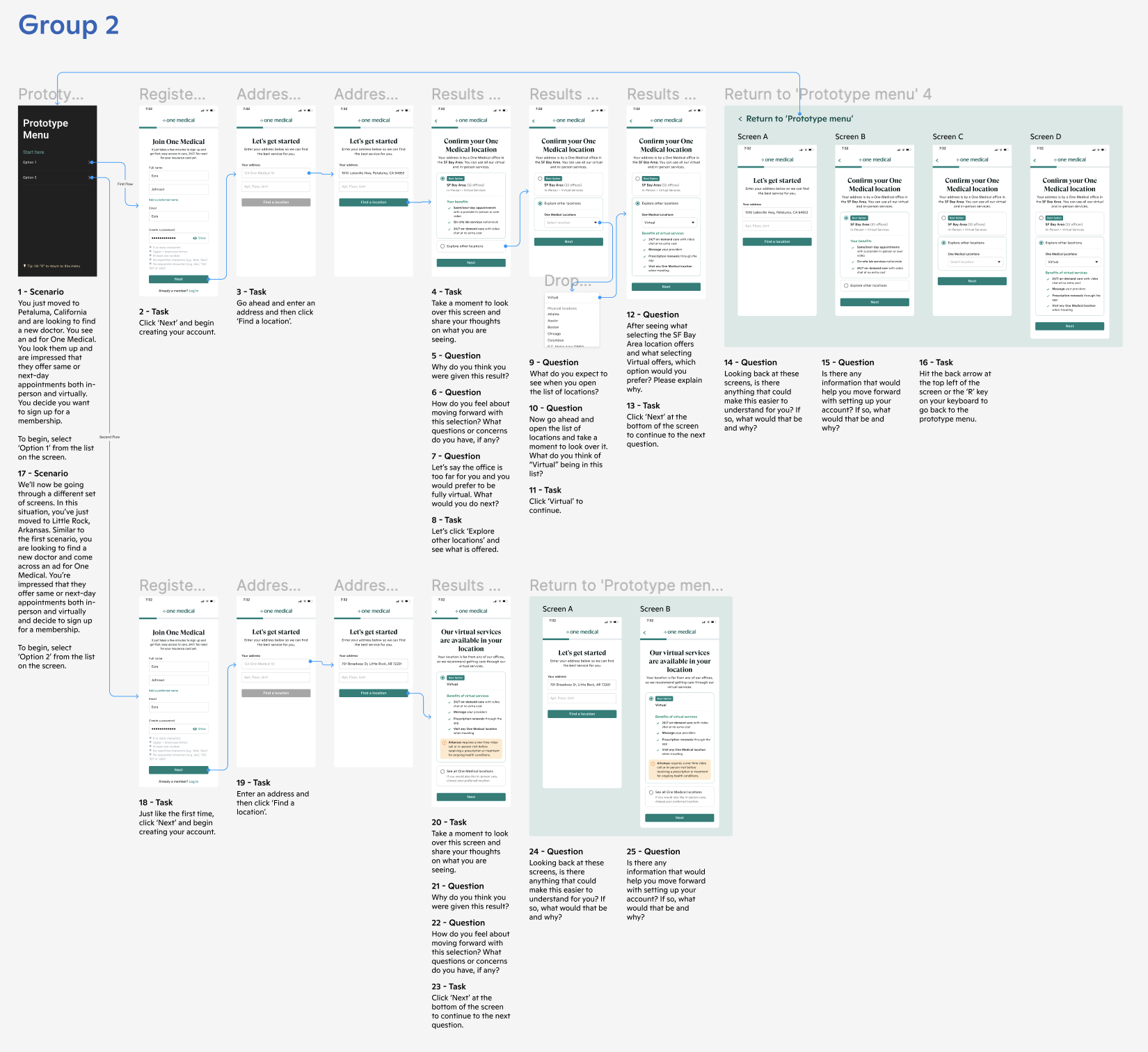 9 out of 12 participants were able to correctly understand that the results they received after putting in their address was influenced by their distance from a One Medical office. It was observed that header copy in the first and second screen was clear and concise. The only other thing desired in this section was transparency on how far away a user was from an OM office.